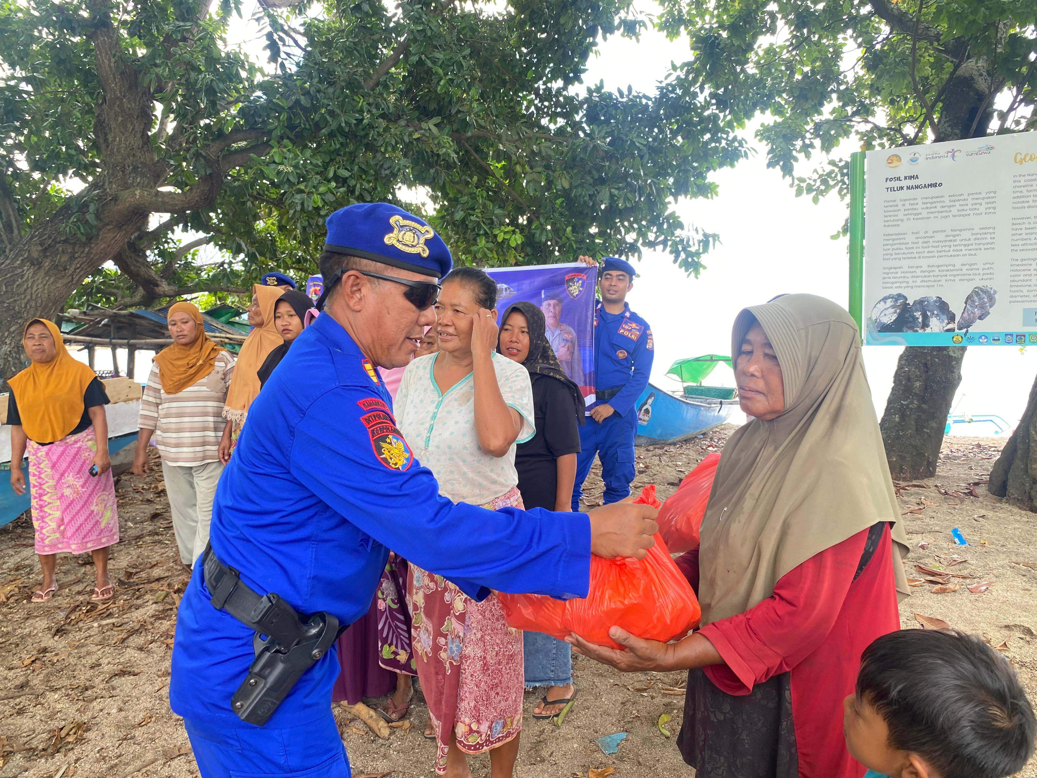 Polres Dompu Gelar Bakti Sosial di Pesisir Nangamiro, Rayakan HUT Polairud ke-75 dengan Aksi Kepedulian