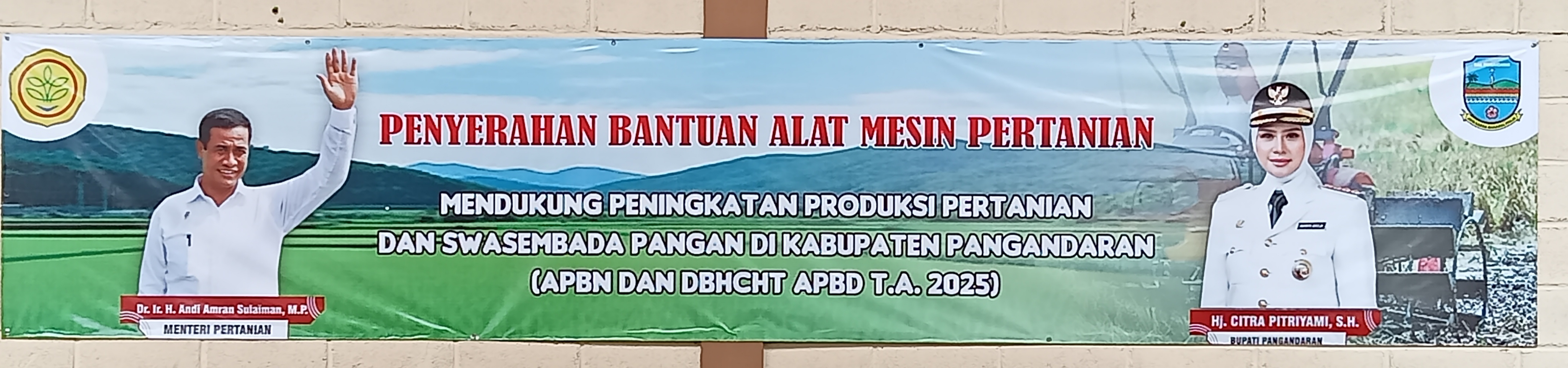 Bantuan alsintan ini bersumber dari Anggaran Pendapatan dan Belanja Negara (APBN) Kementerian Pertanian Republik Indonesia serta Dana Bagi Hasil Cukai Hasil Tembakau (DBHCHT) APBD Kabupaten Pangandaran Tahun Anggaran 2025. Program ini berada di bawah arahan Menteri Pertanian RI, Dr. Ir. H. Andi Amran Sulaiman, M.P., guna mendorong modernisasi pertanian dan peningkatan produktivitas petani.