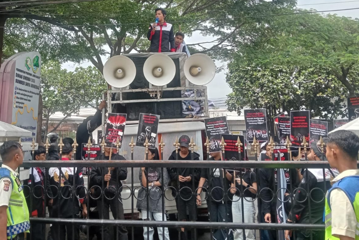 Sekitar pukul 13.30 WIB, puluhan massa aksi tiba di Kantor Dinas ESDM Jawa Barat dengan pengawalan aparat kepolisian. Kedatangan mereka disambut sejumlah perwakilan Dinas ESDM di tengah situasi yang berlangsung kondusif namun penuh tekanan tuntutan publik.