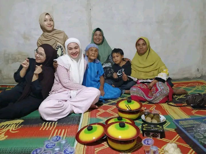 Acara kemudian dilanjutkan dengan doa bersama dan berbuka puasa di hamparan tikar yang digelar di halaman desa. Saat azan Magrib berkumandang, Intan Larasita duduk bersila bersama warga dan menikmati hidangan yang sama, menciptakan suasana hangat dan penuh kekeluargaan.