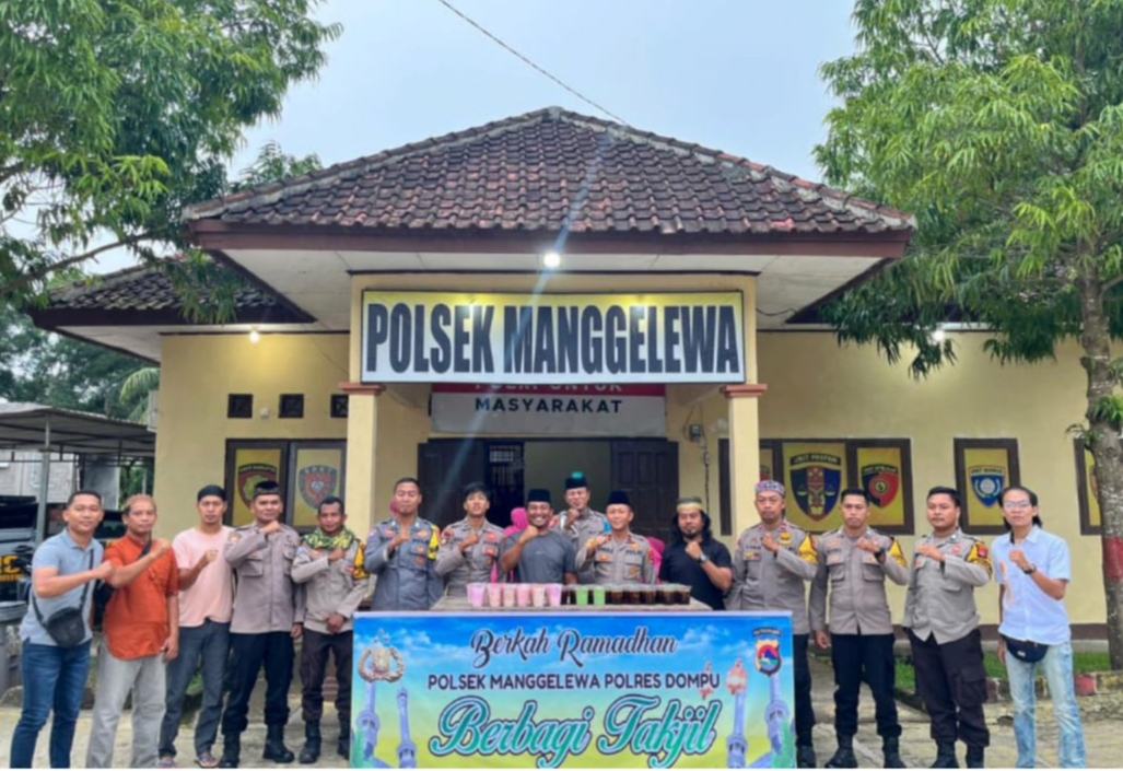 Dompu, global aktual – Dalam rangka menyemarakkan Bulan Suci Ramadhan 1447 Hijriah, jajaran Polsek Manggelewa bersama Bhayangkari Ranting Manggelewa menggelar kegiatan berbagi takjil kepada masyarakat, Kamis (26/2/2026) sekitar pukul 17.30 WITA di wilayah Kecamatan Manggelewa, Kabupaten Dompu.