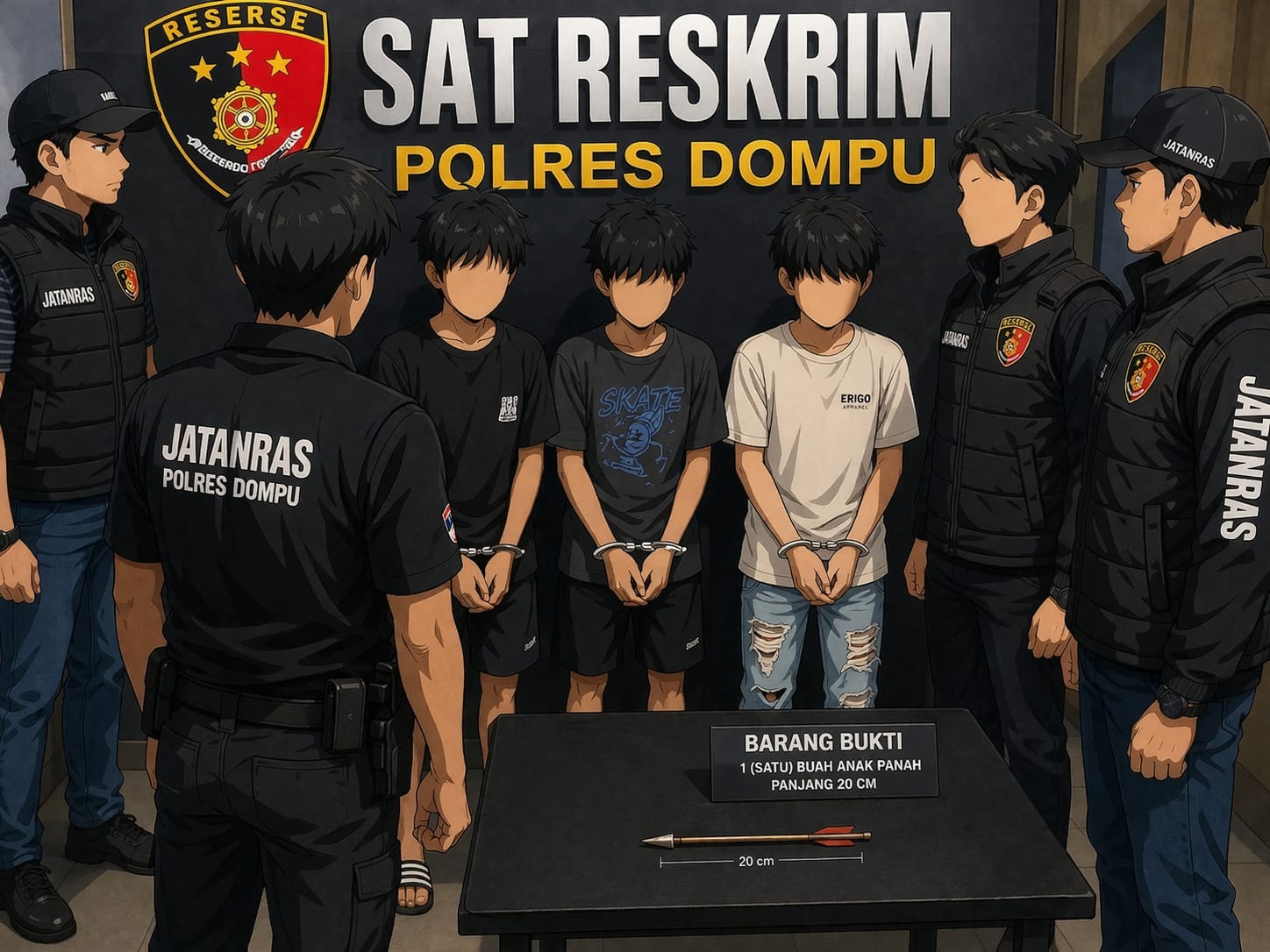 DOMPU, global aktual – Tim Jatanras Satuan Reserse Kriminal (Satreskrim) Polres Dompu berhasil mengungkap kasus penganiayaan menggunakan busur panah yang terjadi di wilayah Kabupaten Dompu, Nusa Tenggara Barat. Tiga terduga pelaku yang masih berstatus pelajar diamankan dalam waktu kurang dari 24 jam setelah kejadian.