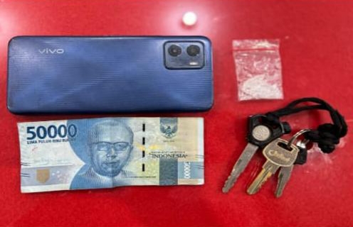 Dari hasil penggeledahan, polisi menemukan satu klip plastik bening berisi kristal putih yang diduga narkotika jenis sabu seberat bruto 1,65 gram. Barang bukti tersebut disembunyikan di bagian stang sebelah kiri sepeda motor pelaku. Selain itu, petugas juga mengamankan uang tunai sebesar Rp50.000 yang diakui pelaku sebagai sisa upah dari jasa mengantarkan narkotika.