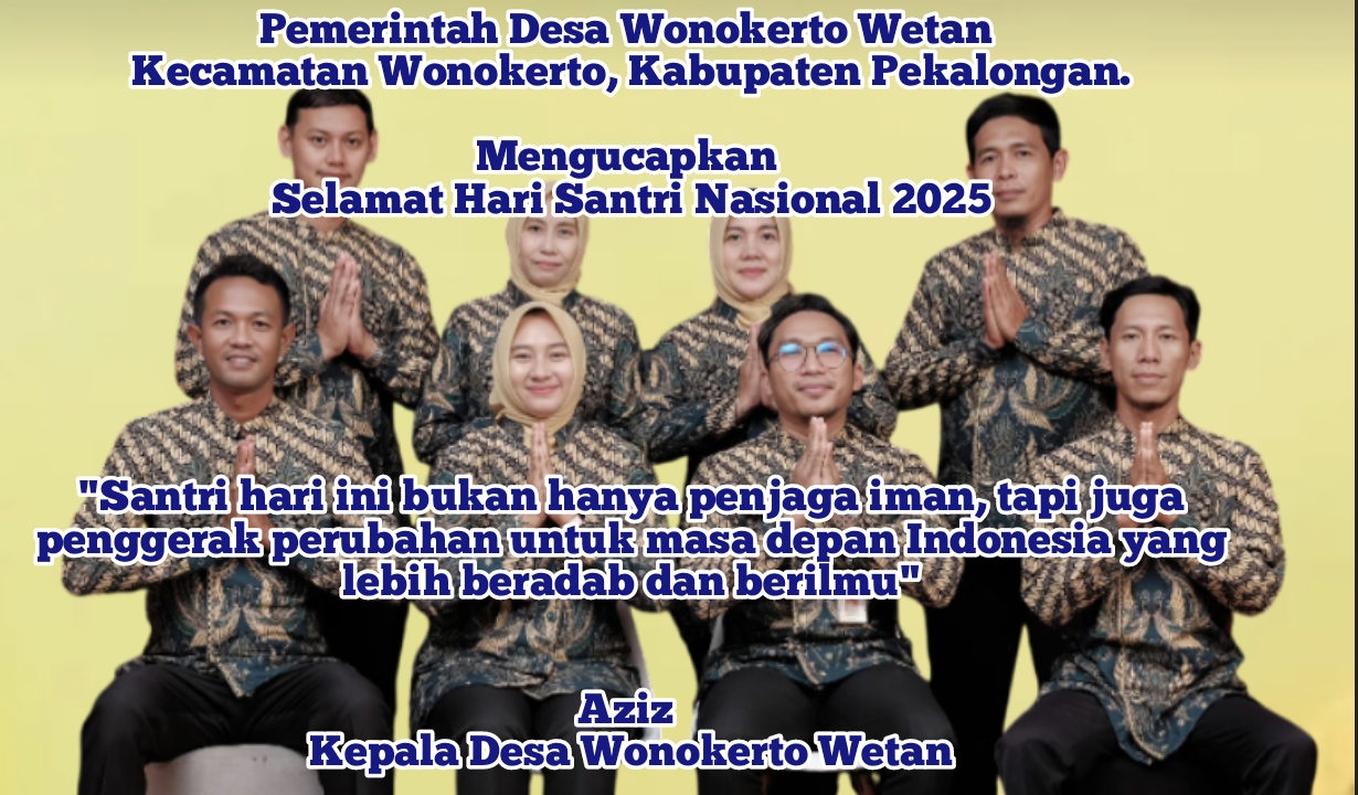 Read MorePemerintah Desa Wonokerto Wetan Kecamatan Wonokerto, Kabupaten Pekalongan Mengucapkan Selamat Hari Santri Nasional 2025 “Santri hari ini bukan hanya penjaga