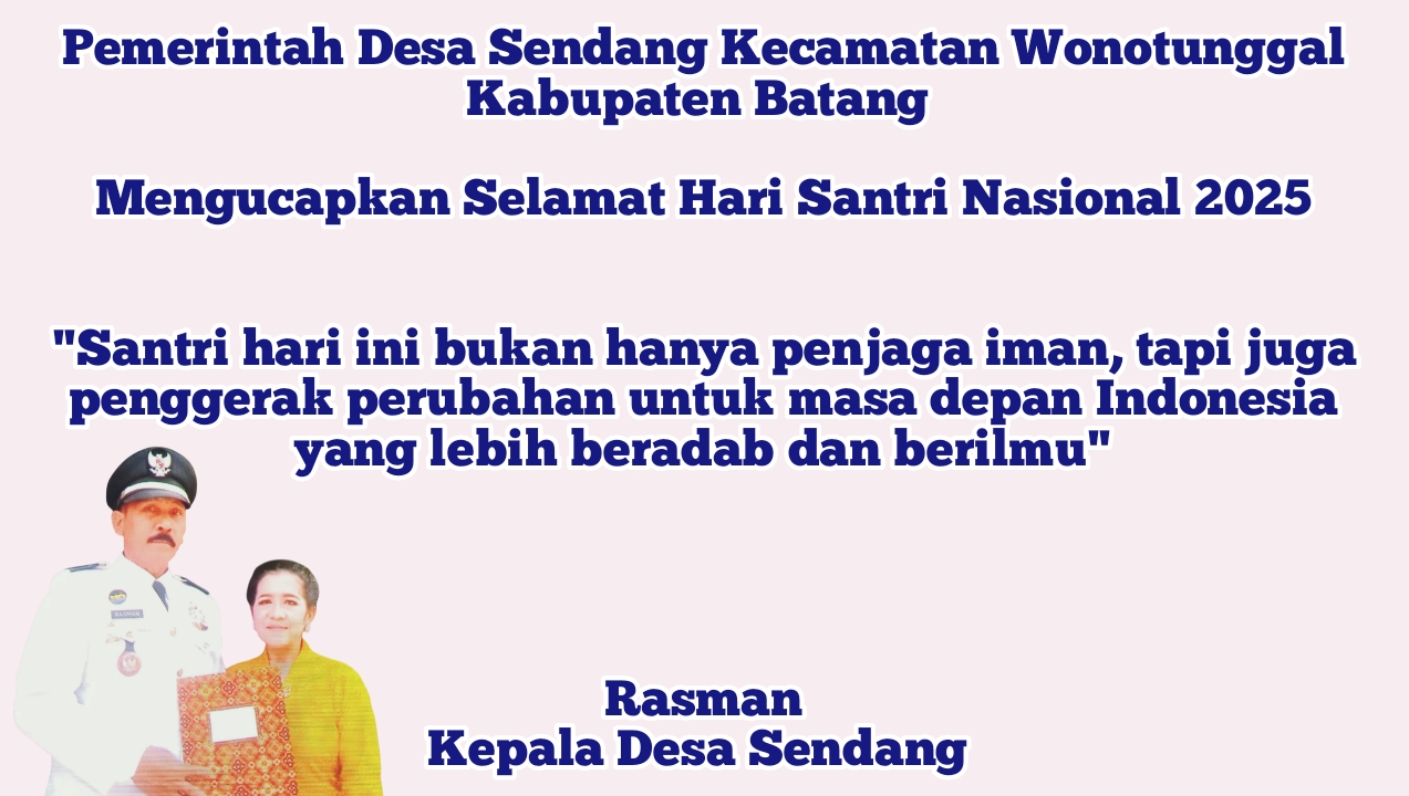 Read MorePemerintah Desa Sendang Kecamatan Wonotunggal Kabupaten Batang Mengucapkan Selamat Hari Santri Nasional 2025 “Santri hari ini bukan hanya penjaga iman,